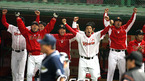 2007 프로야구 한국시리즈 6차전 SK 와이번스와 두산 베어스 경기가 29일 저녁 인천 문학경기장에서 벌어졌다. SK의 8회말 2사 2루서 최정의 안타 때 2루 주자 나주환이 홈인, 4-1을 만들며 환호하고 있다./인천=김영민 기자ajyoung@osen.co.kr <2007 삼성 PAVV 프로야구> [Copyright ⓒ 한국 최고의 스포츠...
