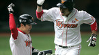 2007 프로야구 한국시리즈 6차전 SK 와이번스와 두산 베어스의 경기가 29일 인천 문학경기장에서 벌어졌다. SK의 8회말 2사 2루서 최정의 안타로 2루주자 나주환이 홈을 밟고 좋아하고 있다. /인천=황세준 기자 storkjoon@osen.co.kr <2007 삼성 PAVV 프로야구> [Copyright ⓒ 한국 최고의 스포츠 엔터테인먼트 전문...