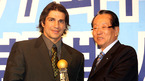 '2007 삼성 PAVV 프로야구 최우수선수(MVP)/최우수신인선수 투표및 각 부문별 시상식'이 31일 롯데호텔 크리스탈볼룸에서 열렸다. 22승을 거둔 리오스가 압도적인 표차로 MVP에 선정됐다. 리오스가 신상우 총재로부터 MVP 트로피를 받고 있다./손용호 기자spjj@osen.co.kr <2007 삼성 PAVV 프로야구>...