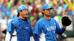 2008 북경올림픽야구 아시아 예선 한국과 대만의 경기가 1일 대만 인터콘티넨탈구장에서 벌어졌다. 6회 마운드에 올라 3이닝을 무실점으로 호투한 박찬호가 8회말 수비를 마치고 동료들의 환영을 받고 있다./타이중=손용호 기자spjj@osen.co.kr <2007 삼성 PAVV 프로야구> [Copyright ⓒ 한국 최고의 스포츠 엔터테인먼트 전문...