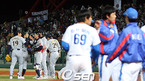 2008 북경올림픽야구 아시아 예선 한국과 일본의 경기가 2일 대만 인터콘티넨탈구장에서 벌어져 한국이 3-4로 역전패, 올림픽 직행 티켓의 자력 획득이 불가능해졌다. 일본 선수들이 마운드에서 좋아하는 가운데 한국 선수들이 팬들에게 침울한 표정으로 인사하고 있다./타이중=손용호 기자spjj@osen.co.kr <2007 삼성 PAVV 프로야구>...