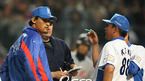 2008 북경올림픽야구 아시아 예선 한국과 일본의 경기가 2일 대만 인터콘티넨탈구장에서 벌어져 한국이 3-4로 역전패, 올림픽 직행 티켓의 자력 획득이 불가능해졌다. 8회말이 끝난 뒤 포지션과 타순을 대거 바꾸면서 김기태 코치와 캐나다인 구심의 소통이 원활하지 않자 박찬호가 나서 통역하고 있다./타이중=손용호 기자spjj@osen.co.kr...