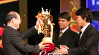 '2007 삼성 하우젠 K-리그 대상' 시상식이 6일 서울 광진구 능동 유니버설아트센터 대극장에서 열렸다. 정규리그서 우승한 포항 스틸러스의 파리아스 감독과 박원재가 곽정환 프로축구연맹 총재로부터 트로피를 받고 있다. /황세준 기자 storkjoon@osen.co.kr [Copyright ⓒ 한국 최고의 스포츠 엔터테인먼트 전문...