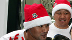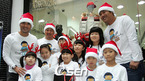 박찬호가 조인성(LG) 이호준(SK)과 함께 7일 오후 서울 명동의 스포츠 의류 EXR 매장 앞에서 사회 복지법인 '신망원' 어린이들을 위해 일일 산타클로스로 분해 선물을 증정했다. 박찬호가 추워서 떠는 어린이들을 감싸주고 있다. / 황세준 기자 storkjoon@osen.co.kr [Copyright ⓒ 한국 최고의 스포츠...