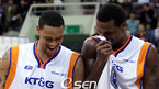 '2007-2008 SK텔레콤 T 프로농구' 정규리그 1위를 달리고 있는 원주 동부와 3위 안양 KT&G가 8일 안양 실내체육관에서 격돌해 KT&G가 83-77로 승리하며 전주 KCC와 동률을 이루며 공동 2위로 올라섰다. KT&G 챈들러와 커밍스가 경기를 마치고 원더걸스의 '텔미'에 맞춰 춤을 추며 쑥스러워 하고 있다....