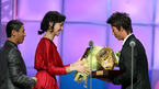 2007 프로야구 각 포지션별 최고의 선수를 가리는 '2007 골든글러브시상식'이 11일 프로야구 선수와 관계자들이 참석한 가운데 코엑스에서 열렸다. 신상우 KBO 총재와 와이번스걸 이현지가 페어플레이상을 시상하기 위해 무대에 오르고 있다./손용호 기자spjj@osen.co.kr <2007 삼성 PAVV 프로야구>...
