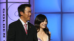 2007 프로야구 각 포지션별 최고의 선수를 가리는 '2007 골든글러브시상식'이 11일 프로야구 선수와 관계자들이 참석한 가운데 코엑스에서 열렸다. 2루수 부문 시상을 위해 나온 박정태가 영화배우 차현정의 키가 커 차이가 많이 나자 조크를 던지고 있다./손용호 기자spjj@osen.co.kr <2007 삼성 PAVV 프로야구>...