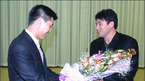 LG 트윈스가 서울대 어린이병원과 함께 진행하는 'LG트윈스 수호천사 기금' 전달 행사가 18일 낮 서울대 어린이병원에서 열렸다. 2007시즌 1년간 적립한 2000만 원 전달식과 박용택 이종렬 박명환 이승호가 참가한 가운데 사인회 및 즐거운 행사를 가졌다. 김종성 서울대 어린이병원장이 박용택에게 감사패를 전달하고 있다./김영민...