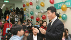 LG 트윈스가 서울대 어린이병원과 함께 진행하는 'LG트윈스 수호천사 기금' 전달 행사가 18일 낮 서울대 어린이병원에서 열렸다. 2007시즌 1년간 적립한 2000만 원 전달식과 박용택 이종렬 박명환 이승호가 참가한 가운데 사인회 및 즐거운 행사를 가졌다. 박명환이 어린이 환자와 함께 게임을 하고 있다./김영민...