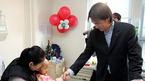 LG 트윈스가 서울대 어린이병원과 함께 진행하는 'LG트윈스 수호천사 기금' 전달 행사가 18일 낮 서울대 어린이병원에서 열렸다. 2007시즌 1년간 적립한 2000만 원 전달식과 박용택 이종렬 박명환 이승호가 참가한 가운데 사인회 및 즐거운 행사를 가졌다. LG 치어리더들이 어린이들에게 나눠주고 있다./김영민...