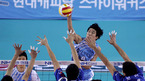 'NH농협07-08 V리그' 남자부 현대캐피탈 스카이워커스와 대한항공 점보스의 경기가 23일 오후 천안 유관순체육관에서 벌어졌다. 1세트 현대캐피탈 송인석의 강타가 대한항공의 블로킹을 뚫고 있다. /천안=황세준 기자 storkjoon@osen.co.kr <2007 삼성 PAVV 프로야구> [Copyright ⓒ 한국 최고의 스포츠...