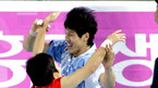 'NH농협07-08 V리그' 남자부 현대캐피탈 스카이워커스와 대한항공 점보스의 경기가 23일 오후 천안 유관순체육관에서 벌어져 5세트까지 가는 접전 끝에 현대캐피탈이 3-2로 승리했다. 현대캐피탈 주상용(오른쪽)이 5세트 승부를 결정지은 마지막 공격을 성공시키고 리베로 오정록과 환호하고 있다. /천안=황세준 기자...