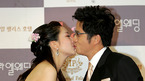 수년간 연예 전문 리포터로 활동해온 조영구(40)가 11살 연하 쇼호스트 신재은씨(29)와 22일 오후 서울 논현동 임피리얼 팰리스 호텔에서 백년가약을 맺는다. 식에 앞서 가진 기자회견에서 신랑 신부가 취재진의 요청에 의해 입맞춤을 하고 있다. /황세준 기자 storkjoon@osen.co.kr [Copyright ⓒ 한국 최고의 스포츠 엔터테인먼트...
