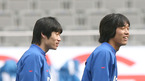 오는 6일 열리는 2010년 남아프리카공화국 월드컵 아시아 3차예선 1차전 투르크메니스탄전을 앞두고 대표팀이 5일 오후 상암월드컵경기장에서 훈련을 가졌다. 김남일 박지성이 웃음을 띠며 훈련에 임하고 있다./상암=김영민 기자ajyoung@osen.co.kr [Copyright ⓒ 한국 최고의 스포츠 엔터테인먼트 전문 미디어...