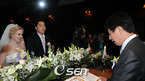 KBS 2TV '미녀들의 수다'에 출연중인 커스티 레이놀즈(27)가 동갑내기 이현진씨와 23일 마포 M팰리스 웨딩홀에서 웨딩마치를 울렸다. 신랑 신부가 남희석의 주례사를 경청하고 있다. /황세준 기자 storkjoon@osen.co.kr [Copyright ⓒ 한국 최고의 스포츠 엔터테인먼트 전문 미디어...