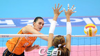 'NH농협07-08 V리그' 여자부 KT&G와 GS칼텍스의 경기가 24일 대전 충무체육관에서 벌어졌다. 1세트 GS칼텍스 하께우의 공격이 KT&G 김세영과 박경낭의 블로킹에 막히고 있다. /대전=황세준 기자 storkjoon@osen.co.kr [Copyright ⓒ 한국 최고의 스포츠 엔터테인먼트 전문 미디어...