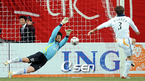 세계적인 축구스타 베컴이 활약하는 LA 갤럭시와 FC 서울의 친선경기가 1일 서울 상암월드컵구장에서 벌어져 베컴이 어시스트를 기록하며 활약했지만 1-1로 비겨 승부차기 끝에 서울이 승리를 거두었다. 김호준 골키퍼가 갤럭시의 마지막 키커 배니의 슈팅을 막아 승리를 확정짓고 환호하는 순간 베컴이 아쉬운 모습으로 이를 지켜보고 있다./상암=손용호...