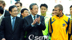 세계적인 축구스타 데이빗 베컴이 활약하는 LA 갤럭시와 FC 서울의 친선경기가 1일 서울 상암월드컵구장에서 벌어졌다. 입장식에서 베컴이 LA 갤럭시 주장 자격으로 정몽준 대한축구협회장과 나란히 서 있다./상암=손용호 기자spjj@osen.co.kr [Copyright ⓒ 한국 최고의 스포츠 엔터테인먼트 전문 미디어...