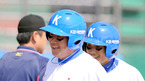 오는 3월 7일부터 대만에서 열리는 베이징올림픽 최종예선을 앞두고 대표팀이 2일 낮 대만 디미디어 티렉스와 친선 경기를 가졌다. 3회말 선두타자 진갑용이 좌측 안타를 날리고 3루에 안착한 뒤 김광수 코치로부터 환영을 받고 있다./타이중=김영민 기자ajyoung@osen.co.kr [Copyright ⓒ 한국 최고의 스포츠 엔터테인먼트 전문 미디어...