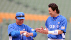대만 타이중에서 7일 베이징 올림픽 야구 최종예선 남아공과의 첫 경기가 7일 낮 타이중 인터컨티넨탈 구장에서 열렸다. 1회초 우중간 담장에 직접 맞는 선제 2루타를 날린 이승엽이 공수 교대 시 김광수 코치와 이야기를 나누고 있다./타이중=김영민 기자ajyoung@osen.co.kr [Copyright ⓒ 한국 최고의 스포츠 엔터테인먼트 전문...