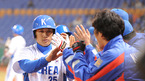 베이징 올림픽 야구 최종예선 호주와의 두 번째 경기가 8일 저녁 7시30분(한국시간) 타이중 인터컨티넨탈 구장에서 열렸다. 1-1이던 1회말 1사 2,3루서 이대호의 우익선상 2루타 때 홈인한 3루주자 이승엽이 동료들의 환영을 받고 있다./타이중=김영민 기자ajyoung@osen.co.kr [Copyright ⓒ 한국 최고의 스포츠 엔터테인먼트...