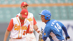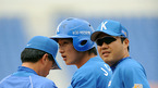 베이징 올림픽 야구 최종예선 한국과 스페인 경기가 10일 낮 1시30분(한국시간) 대만 윈린 도우리우 구장에서 열렸다. 5회초 선두타자 김주찬이 몸에 맞는 볼로 출루한 뒤 트레이너가 부상 여부를 살피고 있는 가운데 박진만 1루코치가 벤치에 상태를 알리고 있다./윈린=김영민 기자ajyoung@osen.co.kr [Copyright ⓒ 한국 최고의...