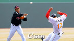 2008 프로야구 SK 와이번스와 LG 트윈스의 시범경기가 11일 인천 문학경기장에서 벌어졌다. LG의 3회초 무사 1루서 박경수의 플라이 타구 때 백업이 늦은 1루주자 김용우가 포스아웃되고 있다. /인천=황세준 기자 storkjoon@osen.co.kr [Copyright ⓒ 한국 최고의 스포츠 엔터테인먼트 전문 미디어...