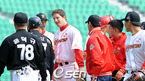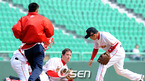 2008 프로야구 SK 와이번스와 LG 트윈스의 시범경기가 11일 인천 문학경기장에서 벌어졌다. SK의 1회말 1사 2루 김재현 타석 때 2루주자 정근우가 득점하고 벤치의 선수들과 하이파이브를 나누고 있다. /인천=황세준 기자 storkjoon@osen.co.kr [Copyright ⓒ 한국 최고의 스포츠 엔터테인먼트 전문 미디어...