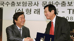 심형래 감독이 한국수출보험공사 조환익 사장과 차기작 'The Last Godfather'에 대한 업무협약식을 11일 서린동 한국수출보험공사에서 가졌다. 심형래 감독이 조환익 사장과 협약서를 교환하고 있다./손용호 기자spjj@osen.co.kr [Copyright ⓒ 한국 최고의 스포츠 엔터테인먼트 전문 미디어...