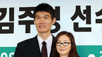 팀을 최단기간 우승에 올려 놓은 원주 동부 김주성이 13일 코리아나 호텔에서 예비 신부와 함께 결혼발표 기자회견을 가졌다. 예비 신부는 박지선 양은 요가사업을 하는 사업가다. 김주성이 예비 신부 박지선과 함께 취재진을 위해 포즈를 취하고 있다./손용호 기자spjj@osen.co.kr [Copyright ⓒ 한국 최고의 스포츠 엔터테인먼트 전문 미디어...