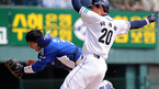 2008 프로야구 두산 베어스와 삼성 라이온스의 시범경기가 18일 잠실야구장에서 벌어졌다. 2회말 2사 1루 정원석의 안타 때 1루주자 유재웅이 홈을 파고들다 포수 현재윤과 충돌하고 있다. 현재윤은 충돌의 여파로 들것에 실려 나갔다./잠실=손용호 기자spjj@osen.co.kr [Copyright ⓒ 한국 최고의 스포츠 엔터테인먼트 전문 미디어...