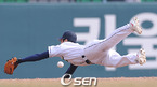2008 프로야구 두산 베어스와 삼성 라이온스의 시범경기가 18일 잠실야구장에서 벌어졌다. 5회초 삼성 선두타자 신명철의 타구 때 두산 유격수 이대수가 다이빙캐치를 노렸지만 안타가 되고 있다./잠실=손용호 기자spjj@osen.co.kr [Copyright ⓒ 한국 최고의 스포츠 엔터테인먼트 전문 미디어 OSEN(www.osen.co.kr)...