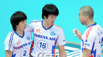 'NH농협07-08 V리그' 남자부 정규리그 2,3위 대한항공과 현대캐피탈의 경기가 23일 인천 도원시립체육관에서 벌어졌다. 3세트서 진상헌의 공격이 성공하며 세트스코어 3-0으로 대한항공이 승리하였다. 대한항공의 최부식이 스태프와 기쁨을 나누고 있다./인천=민경훈 기자 rumi@osen.co.kr [Copyright ⓒ 한국 최고의...