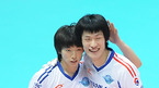 'NH농협07-08 V리그' 남자부 정규리그 2,3위 대한항공과 현대캐피탈의 경기가 23일 인천 도원시립체육관에서 벌어졌다. 대한항공의 신인 진상헌이 3세트를 마무리지은 뒤 동기생인 세터 한선수(왼쪽)와 기쁨을 나누고 있다./인천=민경훈 기자 rumi@osen.co.kr [Copyright ⓒ 한국 최고의 스포츠 엔터테인먼트 전문...