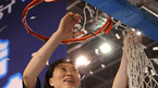 2007-2008 우리V카드 여자 프로농구 용인 삼성생명과 안산 신한은행 챔피언결정전 3차전 경기가 23일 오후 용인실내체육관에서 열렸다. 신한은행이 2년 연속 통합 우승을 하며 챔피언 트로피를 거머쥐었다. 하은주가 골네트를 자르고 있다./용인=김영민 기자ajyoung@osen.co.kr [Copyright ⓒ 한국 최고의 스포츠 엔터테인먼트...