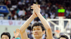 '2007-2008 SK텔레콤 T 프로농구' 안양 KT&G와 원주 동부의 4강 플레이오프 3차전 경기가 9일 오후 안양 실내체육관에서 벌어져 동부가 89-82로 승리, 챔피언결정전 진출에 1승을 남겼다. 경기 종료 후 동부의 김주성이 두 팔을 번쩍 들며 팬들에게 답례하고 있다./안양=민경훈 기자 rumi@osen.co.kr...