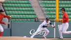 '2008 삼성 PAVV 프로야구' 두산 베어스와 SK 와이번스 경기가 19일 잠실구장에서 벌어졌다. 두산의 11회말 무사 1루서 이종욱의 보내기 번트 때 1루 주자 이대수가 2루에서 오버런, 런다운에 걸렸으나 SK 모창민과 이재원의 어설픈 대처로 2루에 돌아가 세이프됐다./잠실=김영민 기자ajyoung@osen.co.kr...
