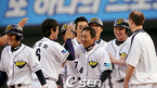 '2008 삼성 PAVV 프로야구' 두산 베어스와 SK 와이번스 경기가 19일 잠실구장에서 벌어졌다. 두산의 11회말 2사 만루서 대타 전상렬이 끝내기 안타를 친 뒤 동료들과 승리의 기쁨을 나누고 있다./잠실=김영민 기자ajyoung@osen.co.kr [Copyright ⓒ 한국 최고의 스포츠 엔터테인먼트 전문 미디어...