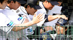 '2008 삼성 PAVV 프로야구' 두산 베어스와 SK 와이번스 경기가 19일 잠실구장에서 벌어졌다. 두산 6회말 2사 1,2루서 이종욱의 우전안타 때 2루주자 유재웅이 홈인한 뒤 덕아웃 동료들의 환영을 받고 있다./잠실=김영민 기자ajyoung@osen.co.kr [Copyright ⓒ 한국 최고의 스포츠 엔터테인먼트 전문 미디어...