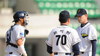 '2008 삼성 PAVV 프로야구' 두산 베어스와 SK 와이번스 경기가 19일 잠실구장에서 벌어졌다. 6⅓이닝 무실점 호투를 펼친 두산 선발투수 랜들을 윤석환 투수코치가 임태훈으로 교체하기 위해 마운드에 올라가 공을 넘겨받고 있다./잠실=김영민 기자ajyoung@osen.co.kr [Copyright ⓒ 한국 최고의 스포츠...