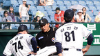 '2008 삼성 PAVV 프로야구' 두산 베어스와 SK 와이번스 경기가 19일 잠실구장에서 벌어졌다. 두산 7회말 1사 1루서 오재원의 내야땅볼 때 1루 대주자 김재호가 병살을 막기 위해 슬라이딩하다 SK 유격수 나주환의 무릎 부위 유니폼을 스파이크로 찢어 1루에 송구를 못한 뒤 김성근 SK 감독이 나와 심판들이 보는 가운데 직접 동작을...