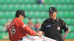 '2008 삼성 PAVV 프로야구' 두산 베어스와 SK 와이번스 경기가 19일 잠실구장에서 벌어졌다. 두산 7회말 2사 1루서 유재웅이 SK 투수 김준의 투구에 맞고 진루하며 덕아웃을 진정시키고 있다. 김준은 퇴장을 당했다./잠실=김영민 기자ajyoung@osen.co.kr [Copyright ⓒ 한국 최고의 스포츠 엔터테인먼트...