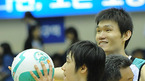 '2007-2008 SK텔레콤 T 프로농구' 원주 동부와 서울 삼성의 7전 4선승제 챔피언결정전 2차전이 19일 오후 원주 치악체육관에서 열려 정규리그 우승팀 동부가 100-96로 이겨 1차전에 이어 2연승을 거뒀다. 경기를 마치고 동부의 전창진 감독이 김주성을 꼭 껴안고 있고 이광재는 사인볼을 팬들에게 던져주고 있다. /원주=민경훈...