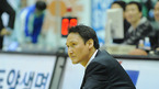 '2007-2008 SK텔레콤 T 프로농구' 원주 동부와 서울 삼성의 7전 4선승제 챔피언결정전 2차전이 19일 오후 원주 치악체육관에서 열려 정규리그 우승팀 동부가 100-96로 이겨 1차전에 이어 2연승을 거뒀다. 4쿼터 막판 삼성 안준호 감독이 긴장한 표정으로 코트에 한쪽 무릎을 꿇고 앉아있다. /원주=민경훈 기자...