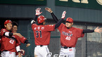 '2008 삼성 PAVV 프로야구' 두산 베어스와 KIA 타이거즈 경기가 29일 잠실구장에서 벌어졌다. KIA 5회초 2사 3루 이현곤 좌월 투런홈런을 날리고 홈인 동료들의 축하를 받고 있다./잠실=김영민 기자ajyoung@osen.co.kr [Copyright ⓒ 한국 최고의 스포츠 엔터테인먼트 전문 미디어...