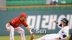 '2008 삼성 PAVV 프로야구' 두산 베어스와 KIA 타이거즈 경기가 29일 잠실구장에서 벌어졌다. 두산 3회말 2사 1루 오재원 타석시 1루 주자 김현수 2루 도루 태그아웃 처리되고 있다./잠실=김영민 기자ajyoung@osen.co.kr [Copyright ⓒ 한국 최고의 스포츠 엔터테인먼트 전문 미디어...