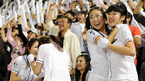 '2008 삼성 PAVV 프로야구' 두산 베어스와 KIA 타이거즈의 경기가 1일 잠실야구장에서 벌어졌다. 6회말 두산이 2대1로 역전해나가자 두산의 치어리더들이 서로 안으며 기쁨을 나누고 있다. /잠실=민경훈 기자 rumi@osen.co.kr [Copyright ⓒ 한국 최고의 스포츠 엔터테인먼트 전문 미디어...