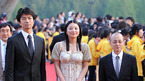 제9회 전주국제영화제 개막식이 1일 저녁 전주시 한국소리 문화의 전당에서 열려 9일간의 축제에 돌입했다. 개막작 상영작인 '입맞춤'의 배우 나카무라 토오루, 고이케 에이코와 만다 구니토시 감독(왼쪽부터)이 레드카펫을 밟고 있다. /전주=황세준 기자 storkjoon@osen.co.kr [Copyright ⓒ 한국 최고의 스포츠...