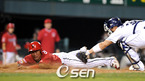 '2008 삼성 PAVV 프로야구' 두산 베어스와 KIA 타이거즈의 경기가 1일 잠실야구장에서 벌어졌다. 5회초 2사 2루 차일목의 안타로 2루에 있던 KIA 이종범이 홈으로 달리고 있다. 두산 유재웅의 호송구로 홈에서 태그아웃./잠실=민경훈 기자rumi@osen.co.kr [Copyright ⓒ 한국 최고의 스포츠 엔터테인먼트...
