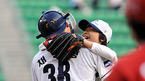 '2008 삼성 PAVV 프로야구' 두산 베어스와 KIA 타이거즈의 경기가 1일 잠실야구장에서 벌어졌다. 경기 전 영화 '파송송 계란탁'에서 아역배우로 활동한 이인성 군이 시구를 했다. 이인성이 시구를 한 후 채상병 포수의 품에 안겨 좋아하고 있다./잠실=손용호 기자spjj@osen.co.kr [Copyright ⓒ...